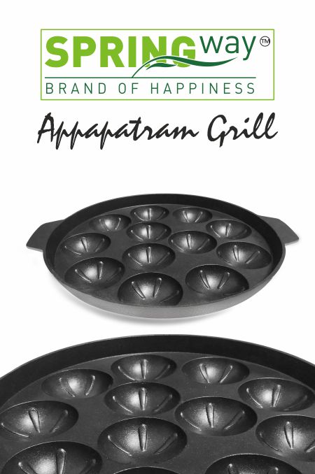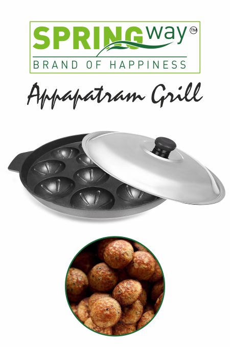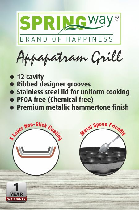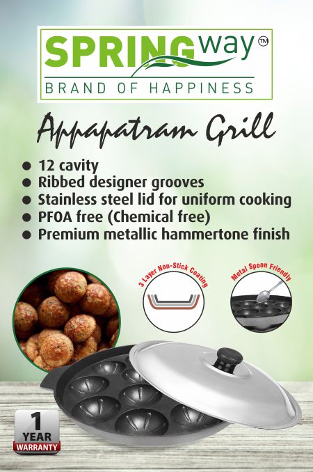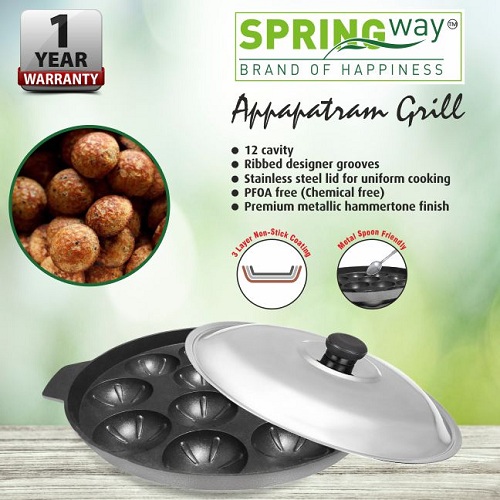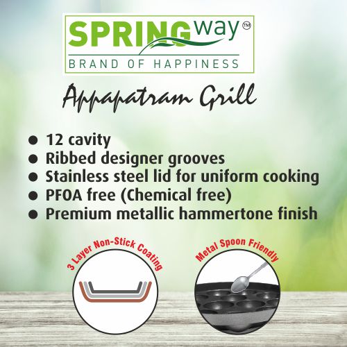 SPRINGWAY Appapatram Grill 3 Layer Non-Stick 12 Cavity, Black
