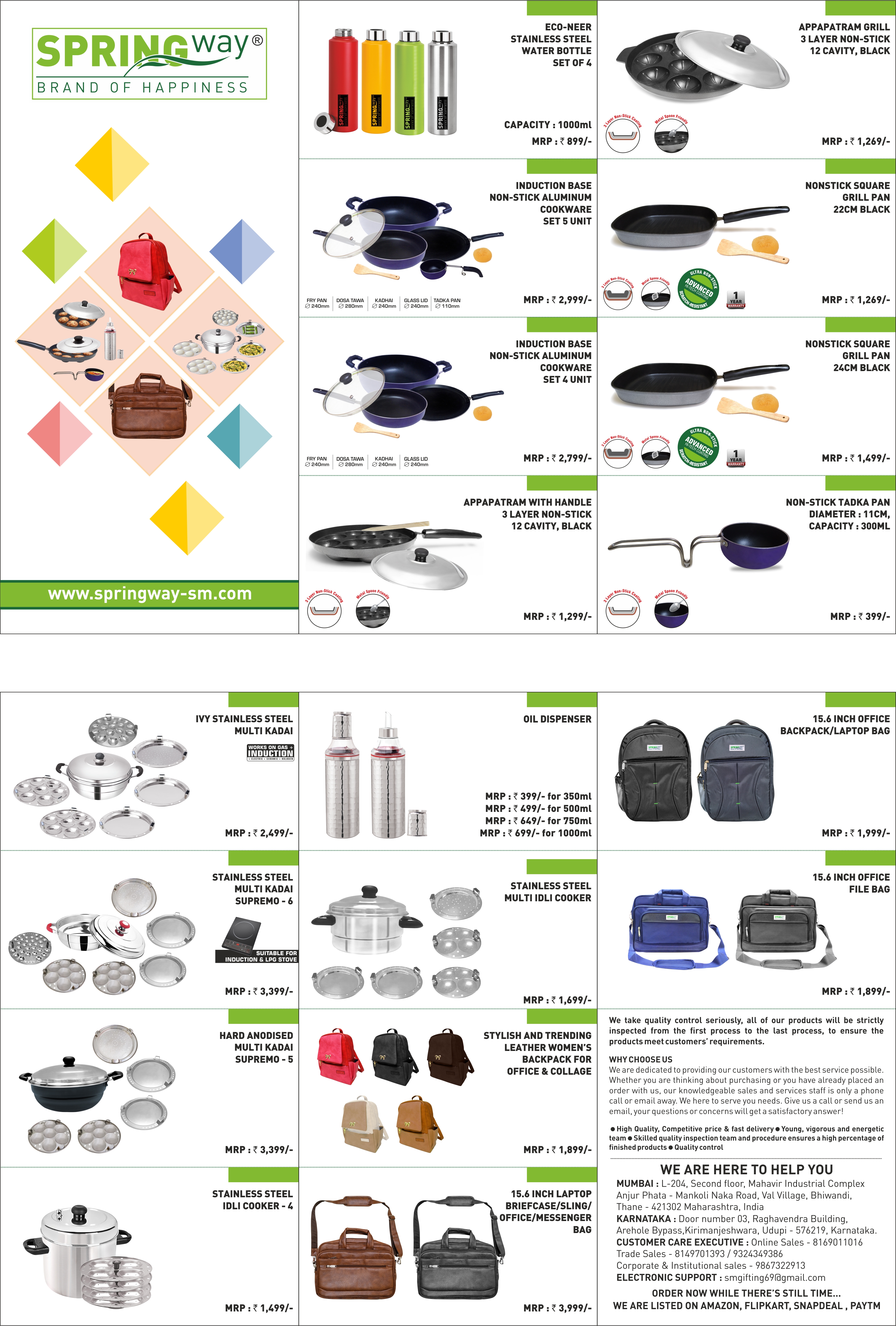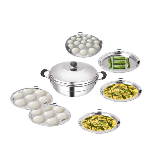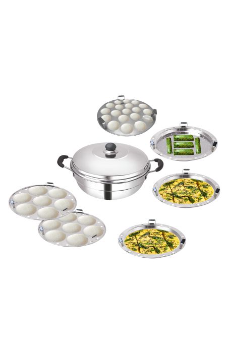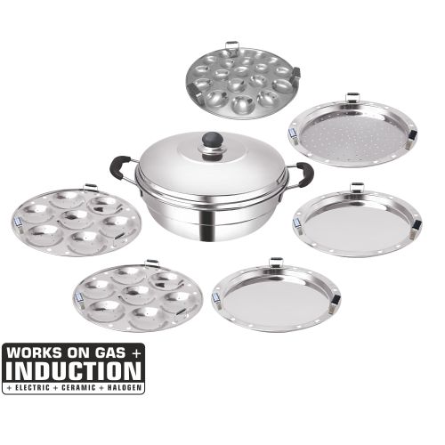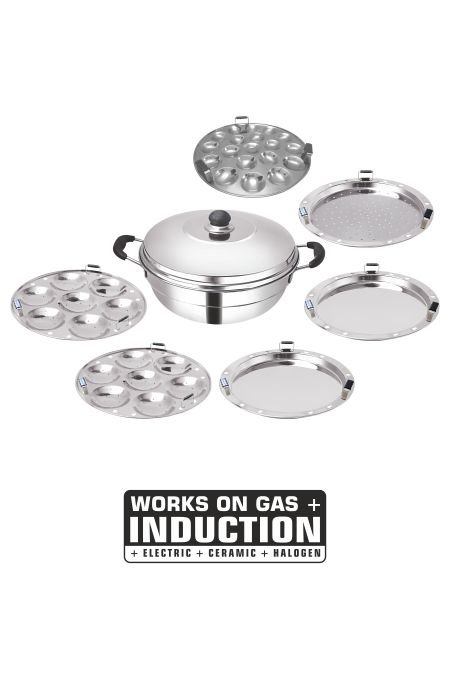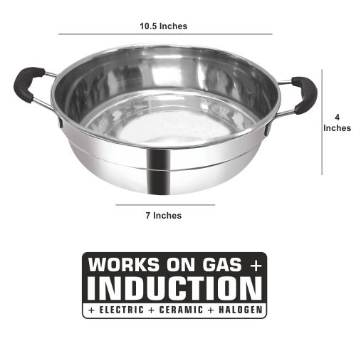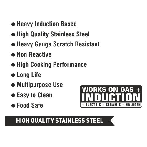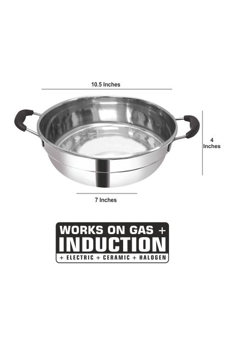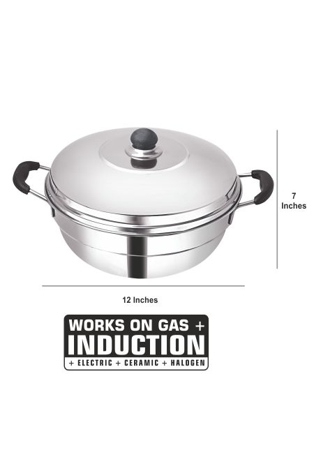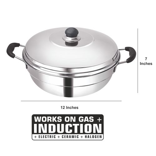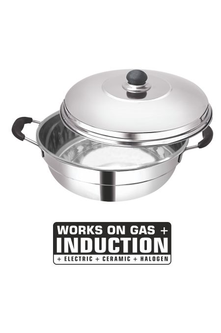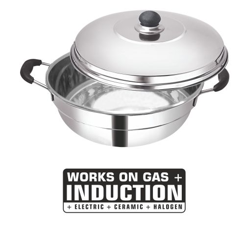 Springway multi-purpose cook n serve Kadai which also can be utilized to feed assorted family demands like Idlis, Dhoklas, Mini Pancakes etc.Its ergonomically designed handle gives a firm grip & ease of lifting.The stainless steel lid is provided for steam cooking.The Kadai comes with a Induction base that ensures uniform and quick heating that saves your time in the kitchen.A unique gifting solution for every occasion